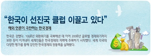 ÇØ¿Ü ¾ð·Ð¸Åü µîÀÌ Çѱ¹°æÁ¦¿¡ Âù»ç¸¦ º¸³»´Â °ÍÀº ¾îÁ¦ ¿À´Ã ÀÏÀÌ ¾Æ´Ï´Ù. Çѱ¹ÀÌ 2008³â Àü ¼¼°è¸¦ ÈÛ¾´ ±Û·Î¹ú °æÁ¦À§±â¸¦ ±Øº¹Çس»´Â Á¶ÁüÀ» º¸ÀÌÀÚ Çѱ¹À» ÁÖ¸ñÇÏ´Â ÇØ¿Ü ¾ð·Ðº¸µµ°¡ ½ñ¾ÆÁ³´Ù.