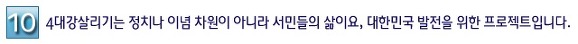 4´ë°»ì¸®±â´Â °À» »ý¾÷ÀÇ ÅÍÀüÀ¸·Î »ï¾Æ¿Â ¼¹ÎµéÀÇ ¿äûÀ̸ç, Áö¹æÀÚÄ¡´ÜüµéÀÌ ¸ÕÀú »ç¾÷ÀÇ Çʿ伺À» °Á¶Çϰí ÀÖ½À´Ï´Ù. 2009³â ¸» 4´ë°»ì¸®±â Èñ¸Á¼±Æ÷½Ä¿¡ Âü¼®ÇÑ Àü³², ±¤ÁÖ, ºÎ»ê, °æ³², ´ë±¸ µî ´ëºÎºÐ ÁöÀÚü ´ÜüÀåµéÀº »ç¾÷ÀÇ Çʿ伺À» °Á¶ÇÏ¸é¼ “¹Ý´ë¸¦ À§ÇÑ ¹Ý´ë¸¦ ³Ñ¾î ÀÌÁ¦ ¼¹ÎµéÀÇ ¾Öȯ°ú °íÅëÀ¸·Î ´«±æÀ» µ¹·Á¾ß ÇÑ´Ù”°í ÁöÀûÇß½À´Ï´Ù. 4´ë°»ì¸®±â´Â È«¼ö¿Í °¡¹³¿¡ ½Ã´Þ·Á¿Â ¿ì¸®³ª¶ó°¡ Ç®¾î¾ß ÇÒ ¼÷¿ø °úÁ¦ÀÔ´Ï´Ù.