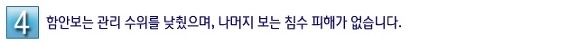 4´ë°¿¡ ¼³Ä¡µÇ´Â 16°³ÀÇ º¸ °¡¿îµ¥ ³«µ¿° ÇԾȺ¸¸¦ Á¦¿ÜÇÑ ³ª¸ÓÁö º¸ÀÇ °æ¿ì ÁÖº¯Áö¿ª ħ¼ö´Â ¾ø´Â °ÍÀ¸·Î ºÐ¼®µÆ½À´Ï´Ù. ÇԾȺ¸µµ ÀÚü Á¶»ç¿¡¼ ÁöÇϼöÀ§ »ó½Â¿¡ µû¸¥ ħ¼ö °¡´É¼ºÀÌ ÆÄ¾ÇµÅ ÀÌÈÄ Àü¹®°¡µéÀÇ ÀǰßÀ» ¼ö·ÅÇØ °ü¸® ¼öÀ§¸¦ ´çÃÊ 7.5¹ÌÅÍ¿¡¼ 5¹ÌÅÍ·Î ³·Ãç ÁÖº¯Áö¿ª ¿µÇâÀ» 14Á¦°öų·Î¹ÌÅÍ¿¡¼ 0.7Á¦°öų·Î¹ÌÅÍ·Î ÃÖ¼ÒÈÇß½À´Ï´Ù. ±×·³¿¡µµ ÇÇÇØ°¡ ¿ì·ÁµÇ´Â ÀϺΠÁö¿ª¿¡ ´ëÇØ¼± ³ó°æÁö ¼ºÅä¿Í ¹è¼ö½Ã¼³ È®Ãæ µîÀÇ ´ëÃ¥À» ÃßÁøÇϰí ÀÖ½À´Ï´Ù.