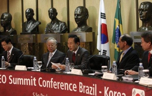 | À̸í¹Ú ´ëÅë·ÉÀº 17ÀÏ(ÇöÁö½Ã°£) ºê¶óÁú »óÆÄ¿ï·ç¿¡¼ ¿¸° ÇÑ¡¤ºê¶óÁú °æÁ¦ÀÎ ¿ÀÂù°£´ãȸ¿¡¼ ¾ç±¹°£ »óÈ£º¸¿ÏÀû °ü°è¸¦ °Á¶Çϸç, ±¤¹°ÀÚ¿ø°ú Ç÷£Æ® »ê¾÷ µî 3´ë ºÐ¾ß¿¡¼ÀÇ À¶ÇÕÇù·ÂüÁ¦ ±¸ÃàÀ» Á¦¾ÈÇß´Ù.<»çÁø=û¿Í´ë> |