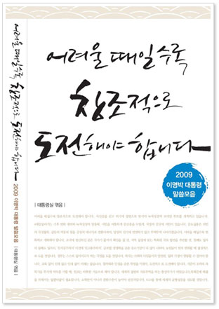 ´ëÅë·É½ÇÀº 18ÀÏ ´ëÅë·ÉÀÇ ¿¬¼³°ú ¸»¾¸À» °£Ã߸° ‘2009 À̸í¹Ú ´ëÅë·É ¸»¾¸¸ðÀ½ ‘¾î·Á¿ï ¶§Àϼö·Ï âÁ¶ÀûÀ¸·Î µµÀüÇØ¾ß ÇÕ´Ï´Ù’(230ÂÊ)¸¦ ¹ß°£Çß½À´Ï´Ù.